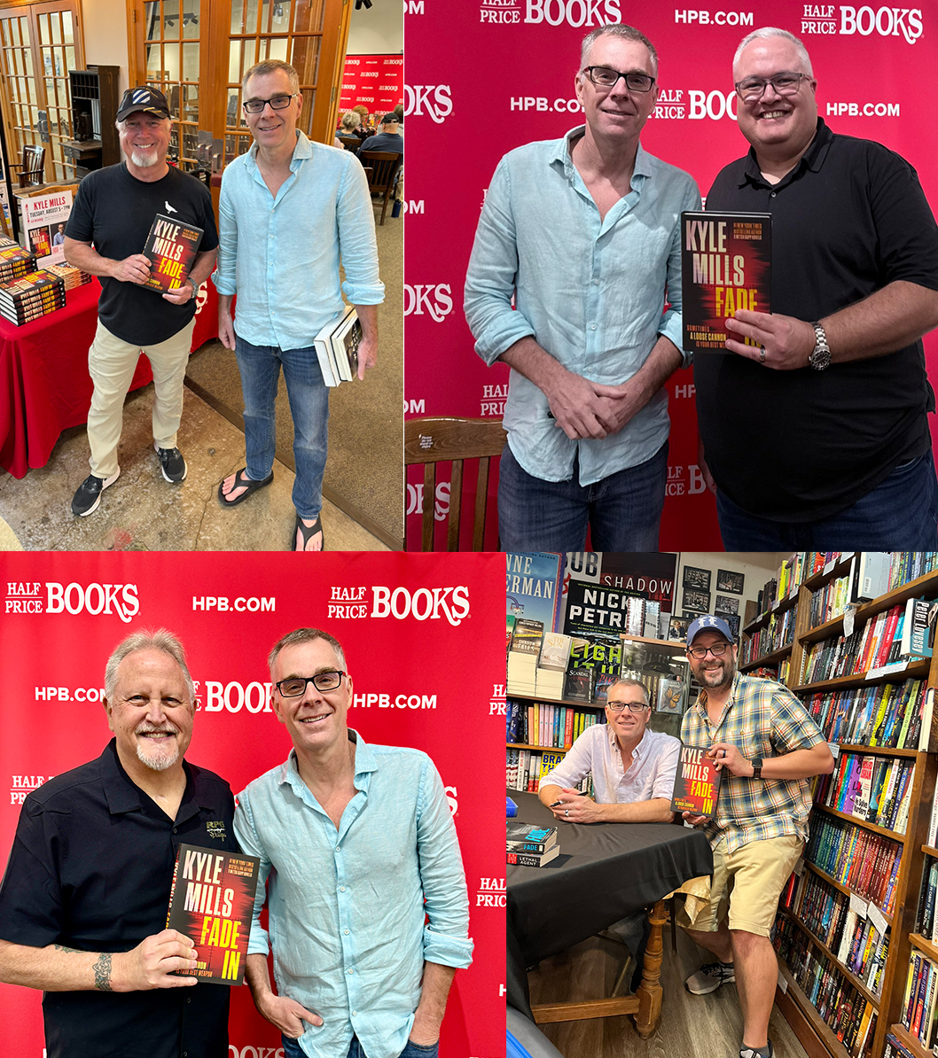 Fade In was only published at the end of July, but so much has happened since then that it feels more like a year. Recently, though, my thoughts have started to drift back to the release and to the fans and podcast/radio hosts who helped spread the word. In case you missed the fun, I’ve rounded up some photos as well as links to interviews from a few of the people who kicked off the party. I also appreciate my writing buddies who showed up at events as well as the bookstores who hosted them: The Poisoned Pen, Once Upon A Crime, Murder By the Book, and Half Price Books.